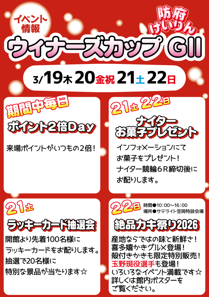防府 ウィナーズカップGⅡ(3/19~3/22) イベント情報